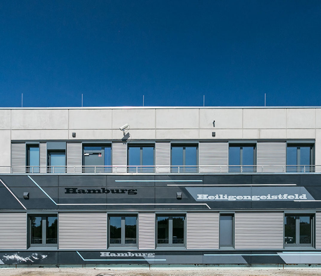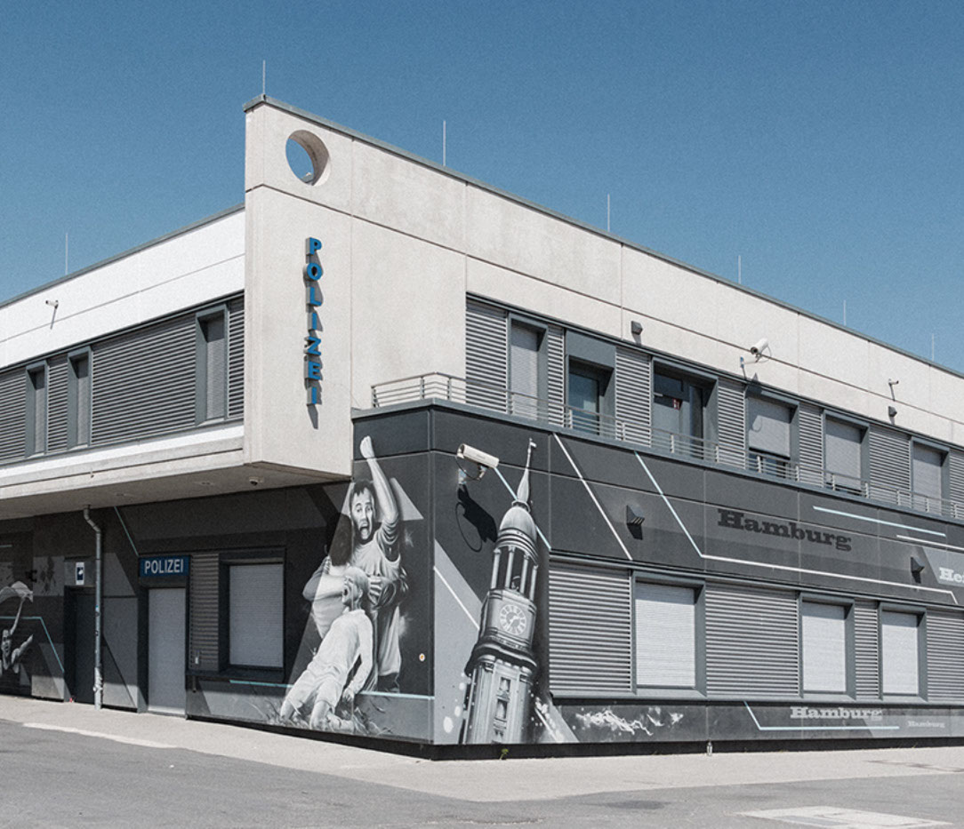 Die städtebauliche Setzung der Stadionwache ist einzigartig: Als freistehendes Gebäude, das direkt auf dem Heiligengeistfeld steht, vermittelt es direkt zwischen Millerntorstadion, Bunker und der riesigen Freifläche, auf der temporär der Dom stattfindet. Die Architektur ermöglicht den Nutzern die Aneignung ihrer autarken Räumlichkeiten. Die Polizei, als größte Nutzergruppe, stellte in der Planung eine besondere Herausforderung dar. Spezielle Sicherheitstechnik und -anforderungen führten zu einer sehr individuellen Bauausführung. Das Gebäude gliedert sich formal in zwei liegende, zueinander versetzte Kuben, die durch eine Flügelwand mit angeschlossenem Vordach voneinander getrennt werden. Die Veröffentlichung der Grundrisse ist leider aus Sicherheitsgründen nicht möglich. Die Zonierung der autarken Nutzungen erfolgt über heterogene Grundrisstypologien die je nach Bedarf zugeschnitten sind. Erschlossen werden alle Einheiten separat von einander.